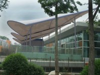 張拉膜是用于膜結(jié)構(gòu)中的膜材,是一種具有高強(qiáng)度、柔韌性好的薄膜材料;是由織物基材(玻璃纖維、聚酯長(zhǎng)絲)和涂層(PTFE、硅酮、PVC)復(fù)合而成的涂層織物。其主要材料就是高強(qiáng)度織物纖維。