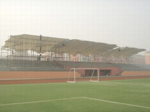 張拉膜在學(xué)校體育看臺(tái)上的應(yīng)用,為學(xué)生提供一個(gè)良好的乘涼、遮陽場所。